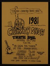 A poster for the 1981 Charity show, held at the Theatre Royal, Timaru, on 3 October [ca.1981]. Presented by the Timaru Country Music Assn. Proceeds to "Crippled Children" (presumably CCS?).