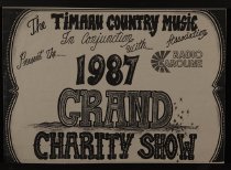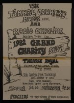 A poster for the Timaru Country Music Association's 1987 Grand charity show, held at the Theatre Royal, Timaru. Presented in conjunction with Radio Caroline.