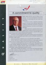 A brochure entitled 'Alliance - "Naturally New Zealand"', from circa 1990 to 2000. Comprised of a single-sheet folded to form a brochure. The front page proudly proclaims the group's reputation and registration with ISO 9002 (quality management system for product manufacture and delivery). The interior pages show a range of staff and management involved in production and delivery of the group's products, while the rear page lists company produ...